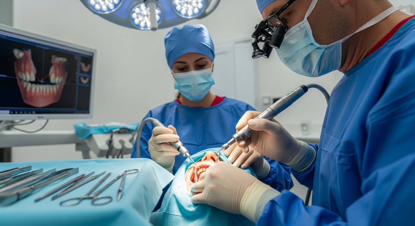 颌骨与种植体实现骨整合是一个复杂而精密的生物学过程,通常需要经过周密的手术规划和一段时间的愈合。首先,口腔外科医生会在颌骨中精确地钻孔,然后将牙科种植体(通常是螺纹状的钛柱)植入其中。这个手术过程需要在严格的无菌环境下进行,以最大程度地减少感染风险并促进愈合。